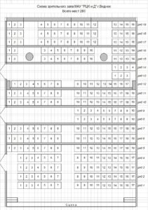 Сцена оборудована моторизированным занавесом (управление за сценой и на балконе)